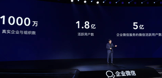在1月11日的企业微信2022新品发布会上,腾讯微信事业群副总裁、企业微信负责人黄铁鸣公布了企业微信的最新成绩:企业微信上的真实企业与组织数超过1000万,活跃用户数超1.8亿,连接微信活跃用户数超过5亿。