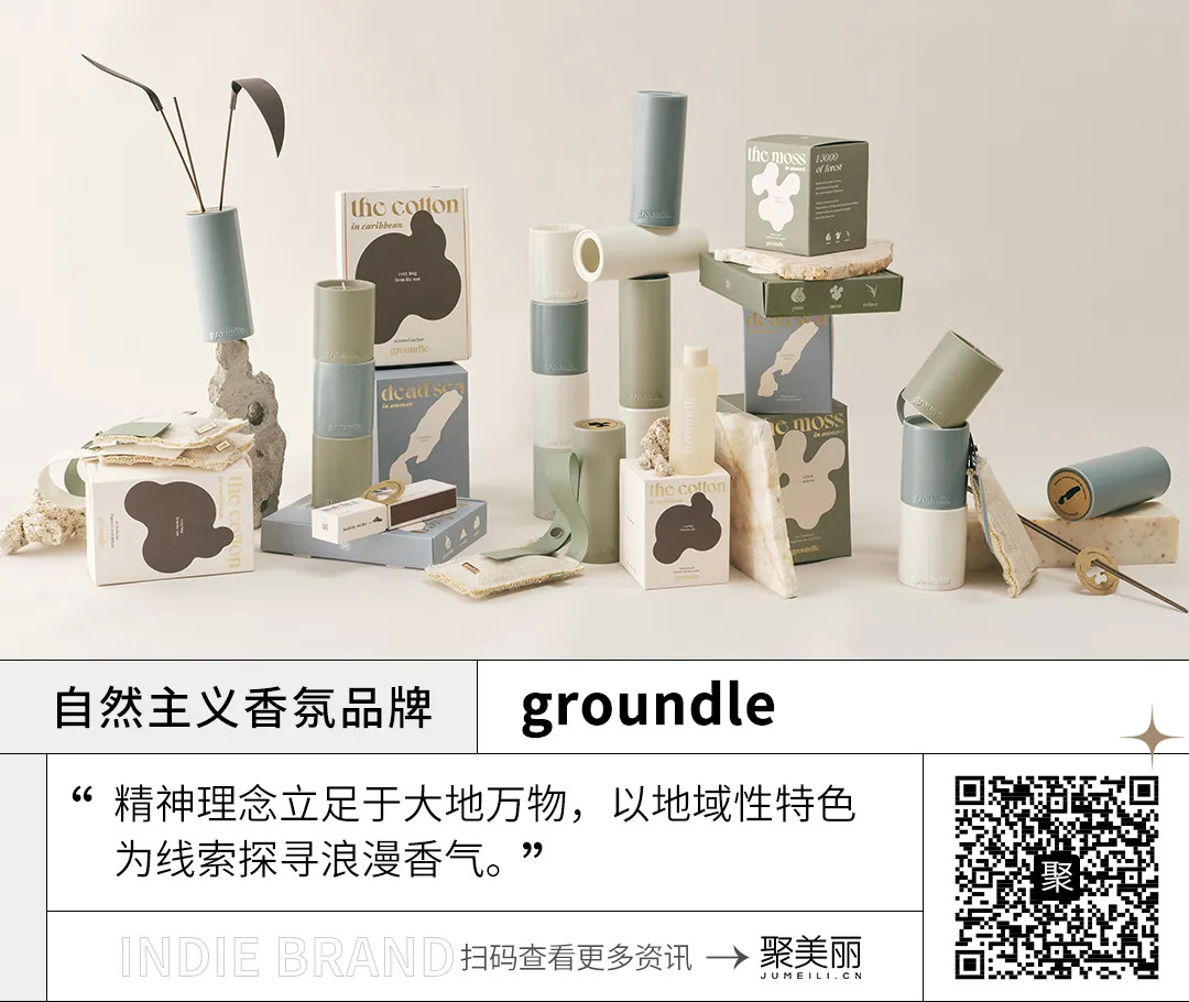 2020年成立的「groundle」是一个具有浪漫情怀的自然主义香氛品牌,品牌名取意于“ground”和“candle”的结合。顾名思义,品牌将精神理念立足于大地万物,以地域性特色为线索和灵感创香。