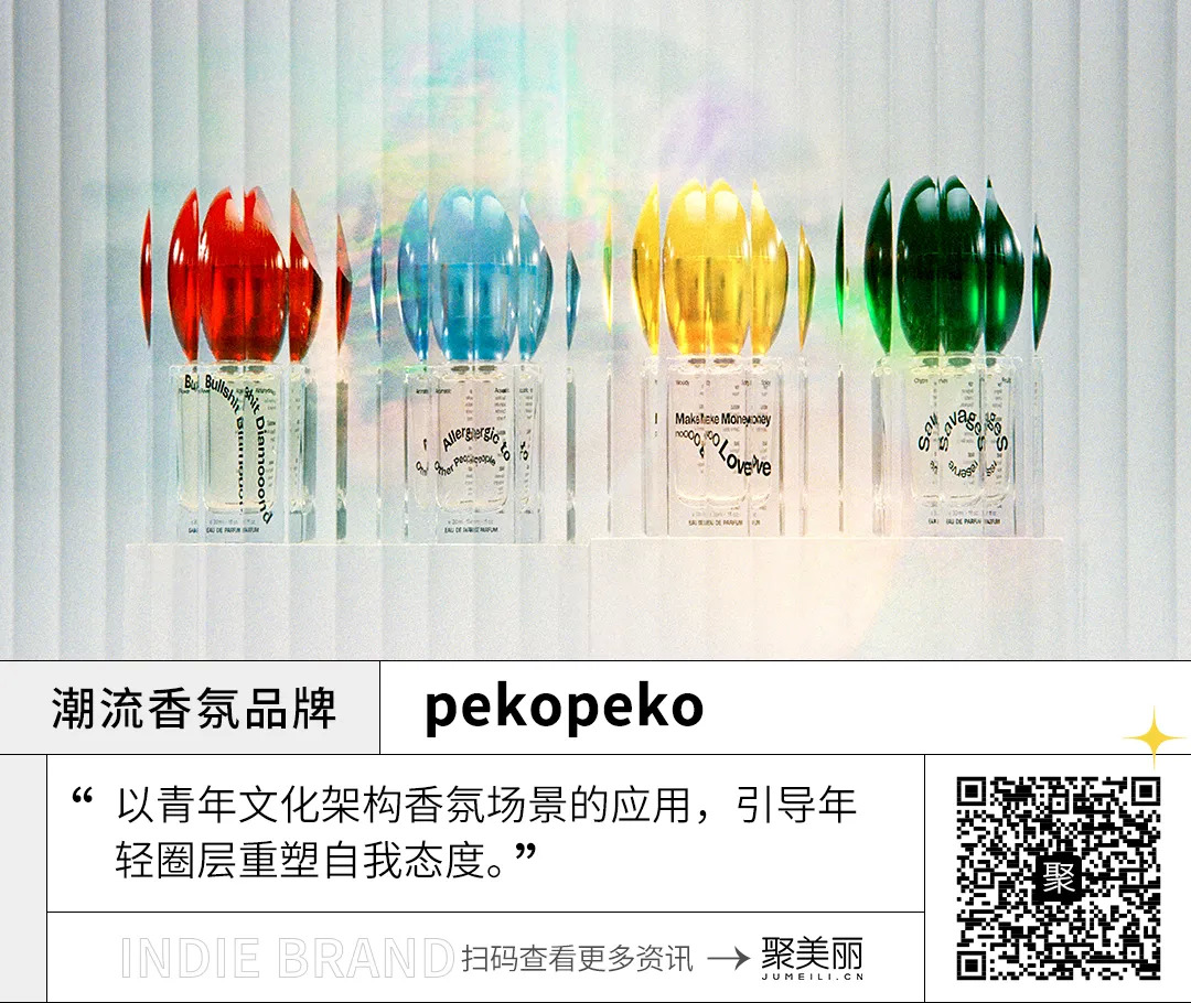 面向中国年轻一代的个性化诉求,切入潮流香水渠道的「香氛品牌pekopeko」于最近上线。根据pekopeko对市场的观察来看,潮流香水品牌尚未诞生头部玩家——在潮流圈里钟爱的香水品牌中,大多都是国外小众沙龙香氛品牌和时尚品牌开发的潮流香水单品,传统香水品牌所传递的精致美学已无法满足新一代年轻人的需求。因此,品牌致力于打造一个满足打造与青年文化和潮流文化相关联的国内潮流香水品牌。