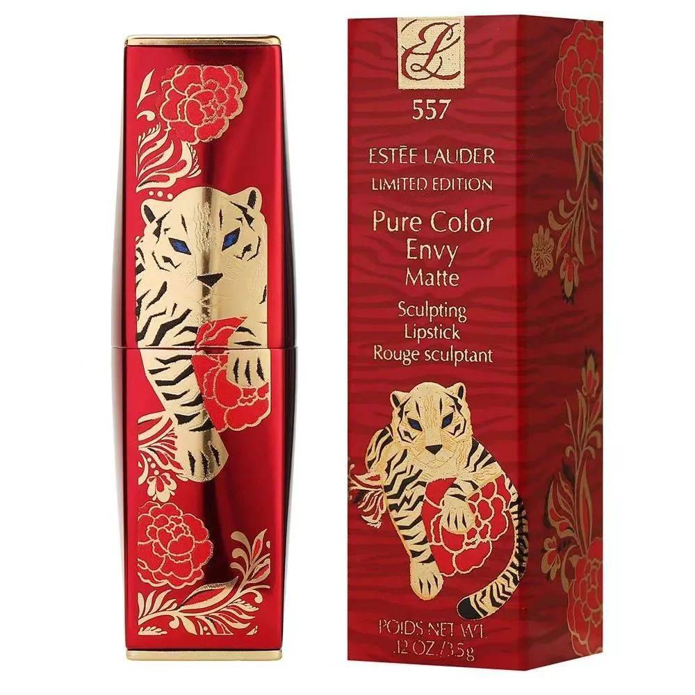 雅诗兰黛今年的限定包装依然走得是华丽又喜庆的路线,在红金配色加牡丹的经典搭配之外,又加入了一只金光闪闪的大老虎。老虎踏过牡丹花丛而来,或许是寓意各位在新的一年都能快乐“走花路”。