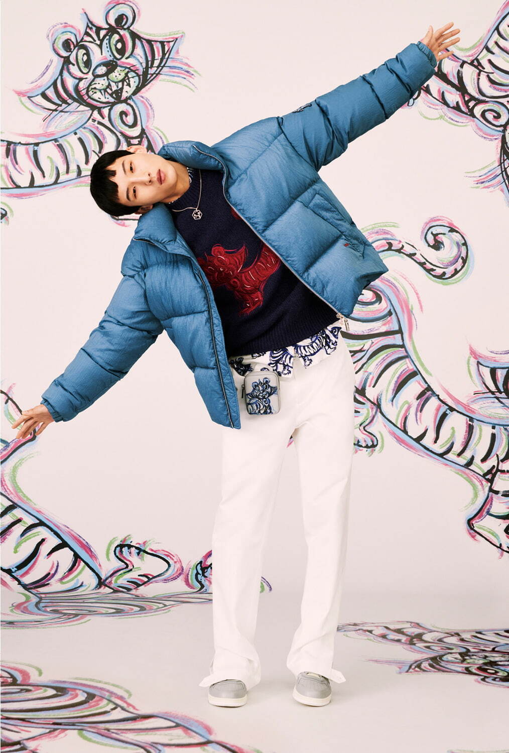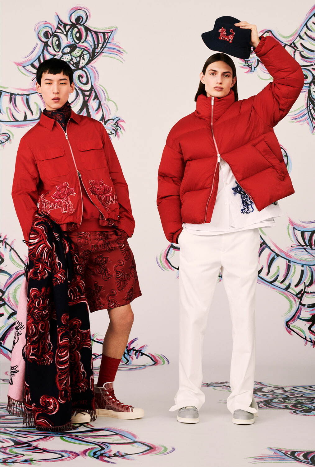 在DIOR×Kenny Scarf中国新年限定系列中,虎图腾少了一丝威猛,但是多了一些俏皮和欢悦。它以印花、刺绣乃至贴饰的形式,点缀在衬衫、针织衫、牛仔裤及羽绒服上。除了中国文化中象征吉祥的红色,蓝色和白色也成了DIOR虎年限定的重要色彩。
