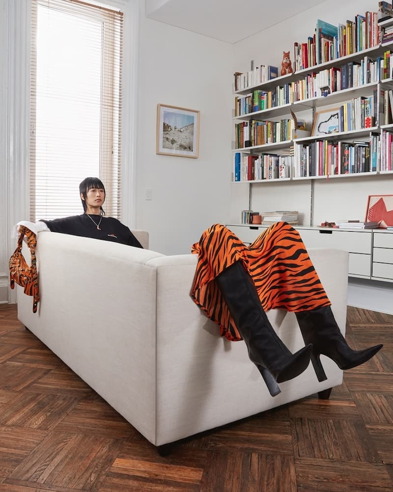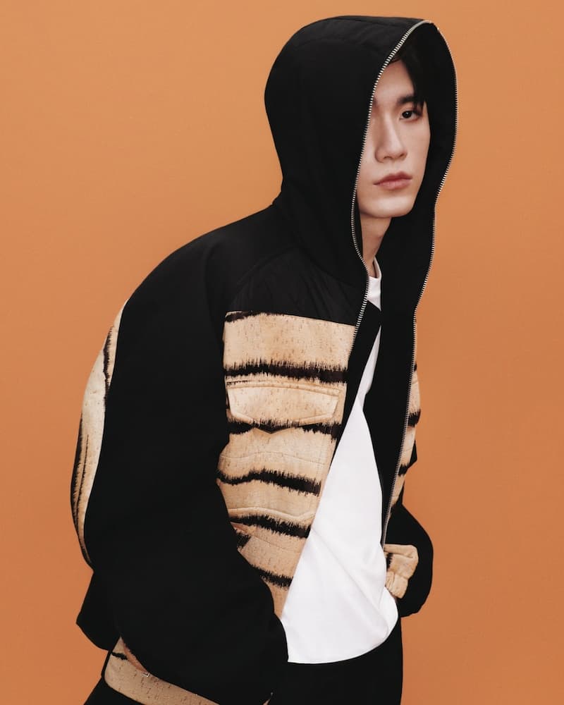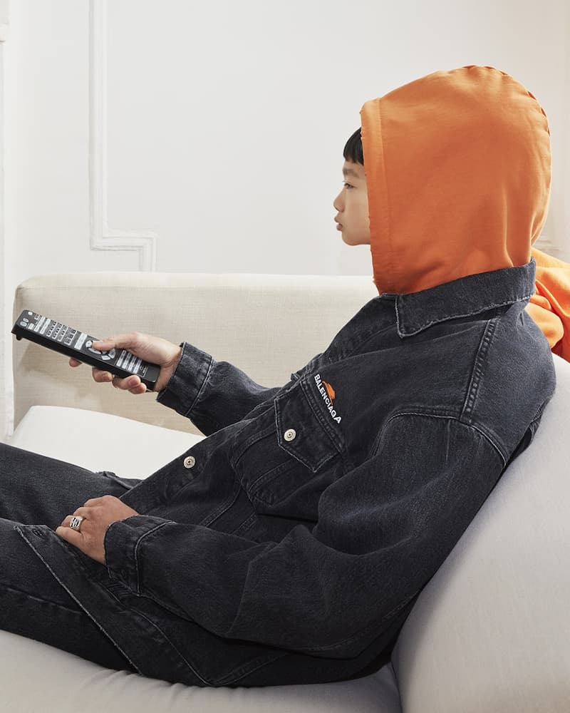 在Balenciaga新春虎年系列中,运动风的Balenciaga徽标上方被加上了一头咆哮的老虎侧影。此外,巴黎世家还以剪影、虎纹以及橘色等多种形式呈现虎元素,为运动外套、牛仔夹克、扭褶连衣裙等经典款式带来虎纹版新演绎。