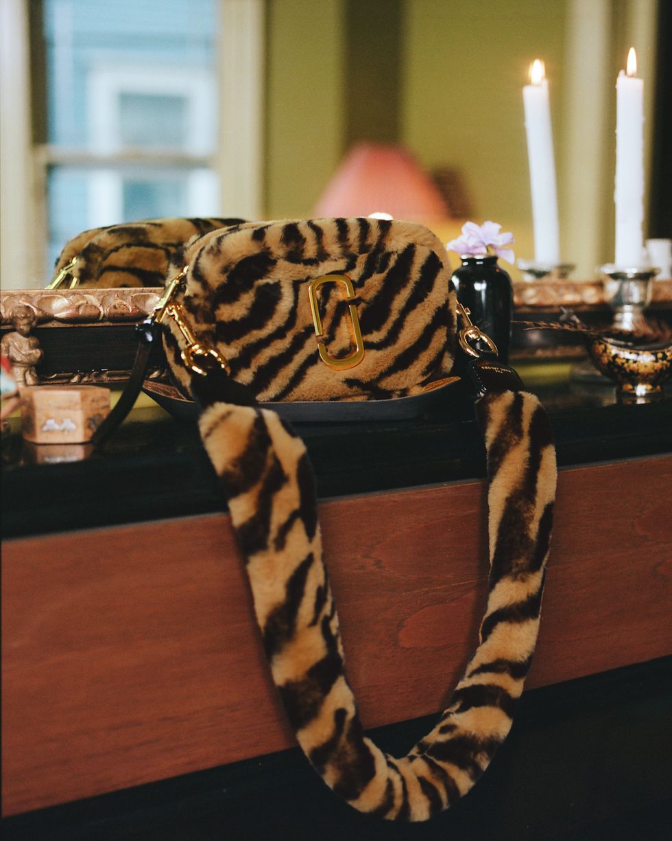 当然,如果你觉得虎纹过于霸气而少了一分可爱,那不妨给它再加上点毛绒元素。Marc Jacobs就将自己标志性的相机包换上了虎纹绒毛外套,时髦可爱的同时还带着一些野性张扬。同样毛绒绒的包带甚至有几分神似老虎尾巴,柔软还好摸。