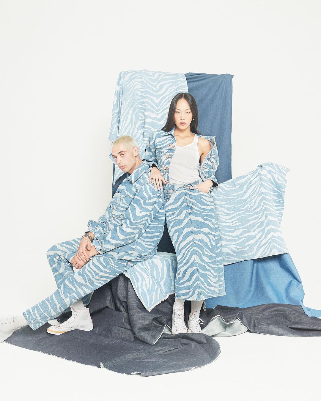 对以牛仔闻名的Levi’s而言,选择以水洗蓝诠释虎纹合情合理。Levi’s×CLOT最新联乘系列选用虎纹迷彩牛仔布,打造出Type II Trucker 夹克、宽松版型的九分牛仔裤和后开衩高腰中长裙等单品。