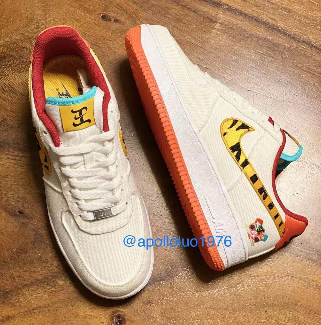 Nike选择为生肖系列的Air Force 1再添一枚“虎”将。虎年版Nike Air Force 1 Low以白色帆布构成基础鞋面,标志“对勾”采用虎纹丝绒材质,呈现出虎皮质感。极具中国特色的刺绣花老虎成为整双鞋的最大亮点。鞋款还饰以红色、橙色和蓝色边框,增添整体国风效果。