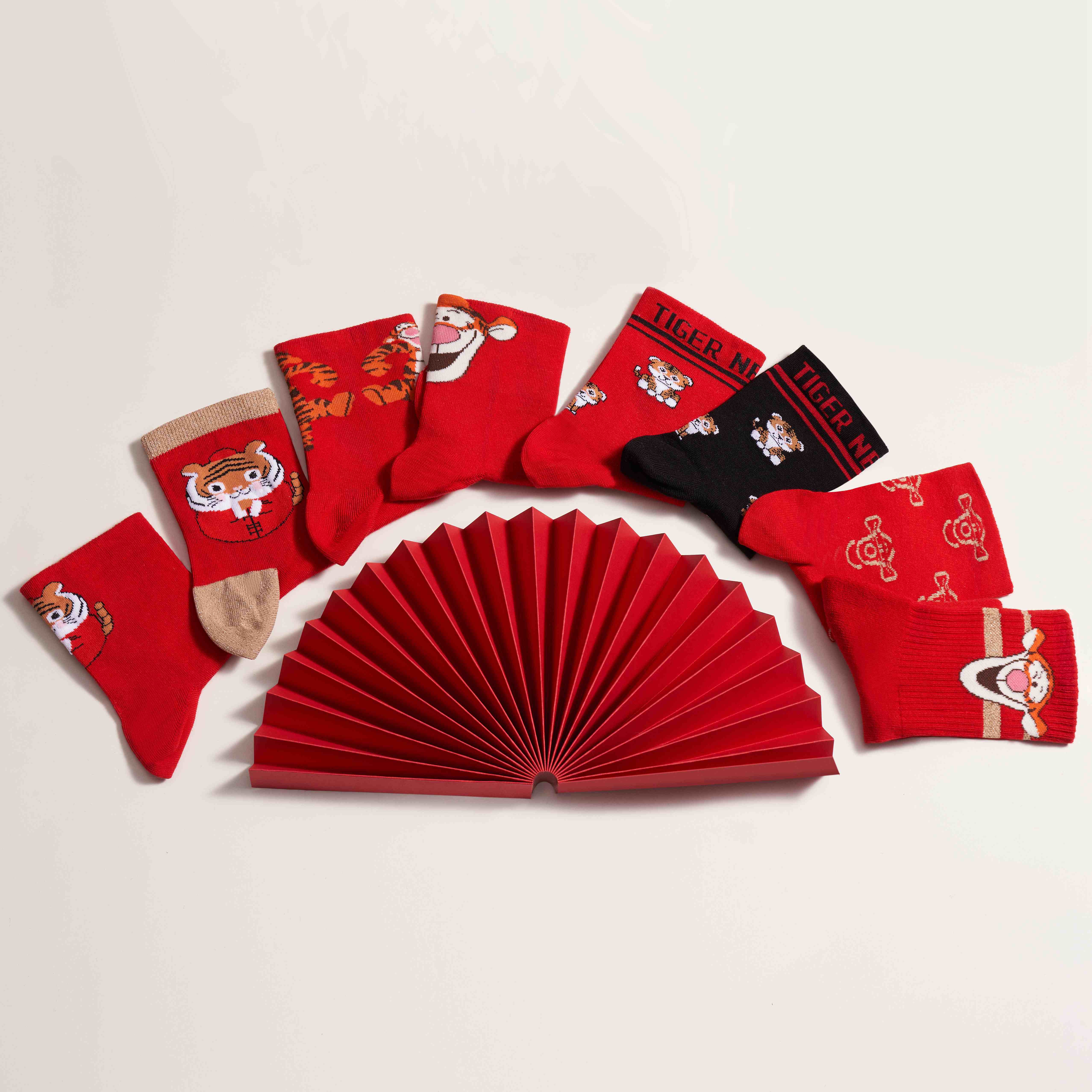 CALZEDONIA虎年系列印花短袜和虎纹连裤袜也是本命年打底的有趣选择,其中还有与迪士尼联名的跳跳虎图案短袜。