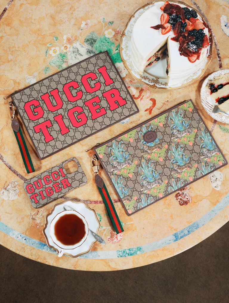 值得一提的是,Gucci还为这一系列打造了两种截然不同的风格,一种是融入Flora和老虎印花的浪漫优雅风,另一种则直白地印上GUCCI TIGER,街头感十足。