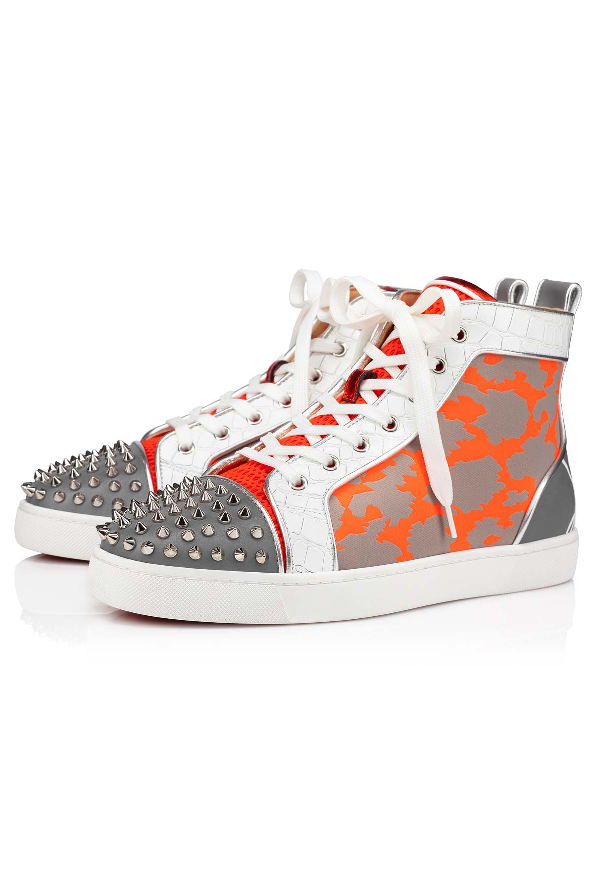 把自然虎纹的橘色再调亮一些,你就能获得更具活力也更加抢眼的亮橙色。 一向个性张扬的Christian Louboutin就选择以亮橙色搭配虎纹来打造虎年系列。橙色同时也象征着朝阳,寓意新年伊始,寄托着对新年的祝福。无论是橙色虎纹配铆钉的运动鞋,还是光面的橙色高跟鞋,都洋溢着蓬勃朝气。