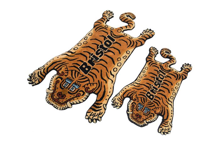 想要直白一点展示虎年霸气,你还可以直接让一只“虎”俯卧在脚下。日本品牌 F.C. Real Bristol的2022虎年主题系列中,除了长袖 T-Shirt、连帽衫,还有超霸气的老虎地毯。地毯除了橘色和灰色两种配色外,还有摆放在客厅或门口的尺寸可供选择。