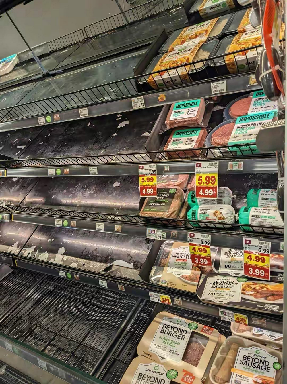 近日Reddit上有人分享了一个颇有意思的帖子——“暴风雪天气下,你会宁愿饿死也不吃人造肉”。配图上,超市货架的一边摆满了着各种品牌的人造肉,而另一边则被扫荡一空。