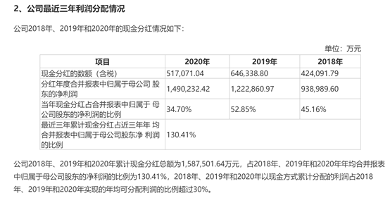 此外,根据配股说明书显示,近三年中信证券累计现金分红达158.75亿元,2018至2020年的现金分红数额(含税)依次为42.41亿元、64.63亿元和51.71亿元。