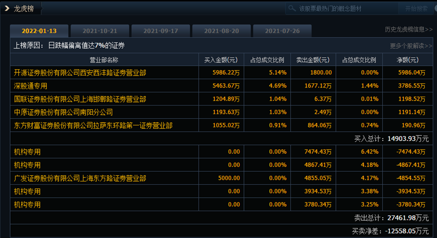 盘后龙虎榜数据显示,卖方席位中,有4家机构专用席位合计卖出2.01亿元。