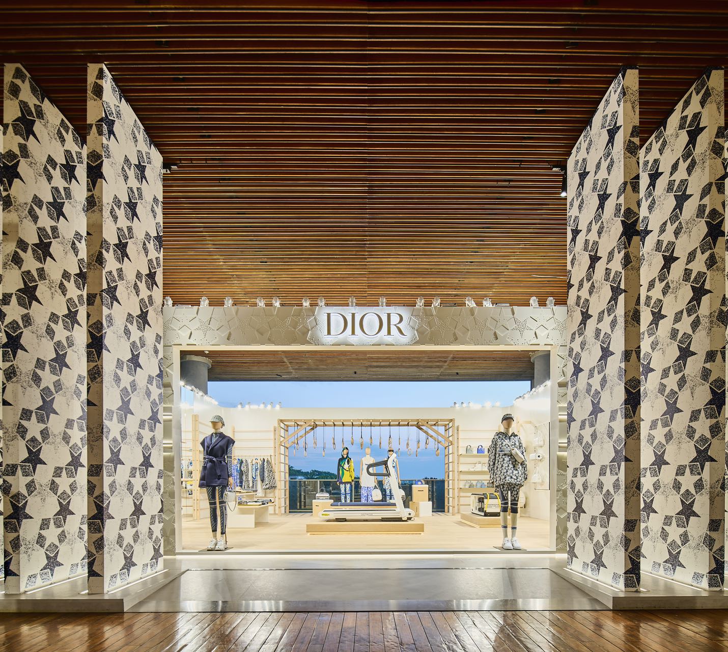 迪奥三亚DIOR VIBE限时店,设计采用极简主义的木质元素,别具一格的空间令人仿佛步入属于运动与舞蹈的世界。 DIOR VIBE系列亮相于迪奥二零二二早春系列发布秀,由女装创意总监玛丽亚•嘉茜娅•蔻丽设计,将运动风范与优雅魅力完美糅合。