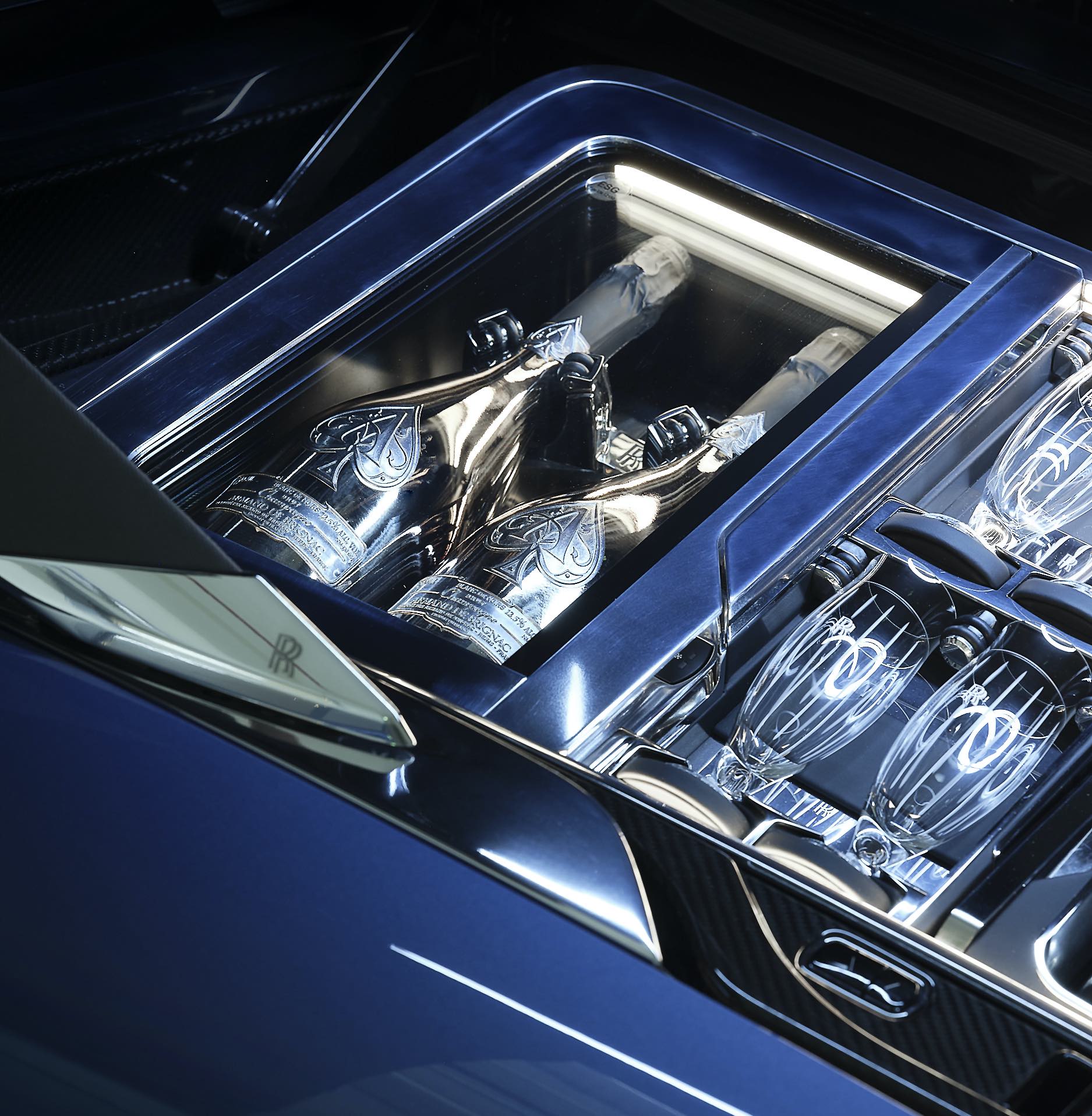 劳斯莱斯团队将游艇的尾部与汽车底盘相结合,“浮影”概念由此而生,三位客户同意三台车采用同样的外观,但内部进行高度个性化定制。