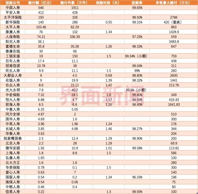 保险理赔一直是投保人最关注的问题,据界面新闻不完全统计,新年伊始,有四十余家险企陆续公布了理赔成绩。