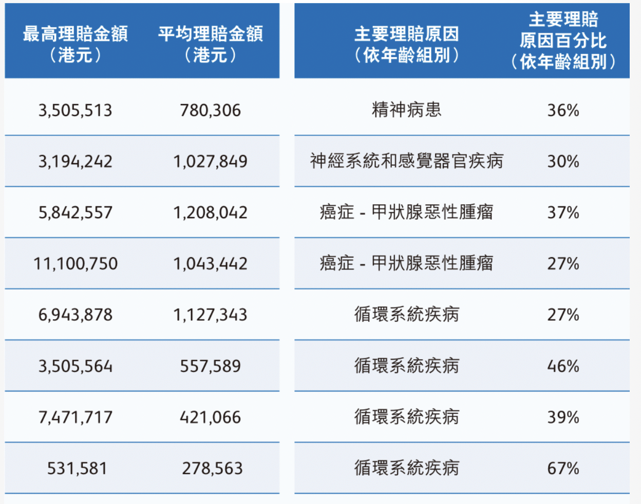 根据中国精算师协会发布的《国民防范重大疾病健康教育读本》中的数据显示,重疾理赔中占据70%的癌症,治疗费用需要22万元至80万元,第二高发的心脑血管疾病,治疗费用也在10万元至30万元之间。根据英国保诚保险公司的2021上半年理赔报告,香港地区的重疾理赔额平均在100万港币(约合人民币82万元),是目前内地的四倍。