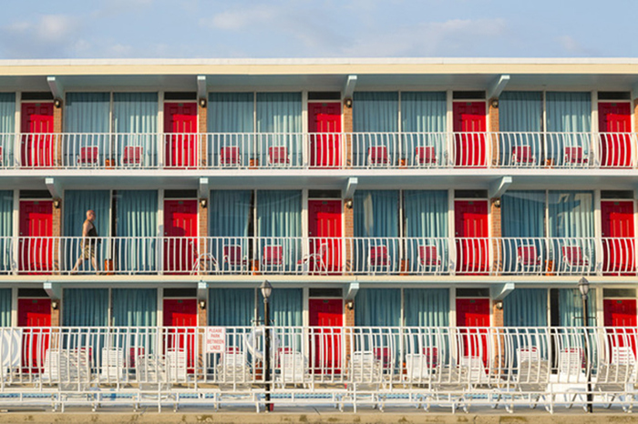 上世纪中期,光是在新泽西的Wildwood一地,其工业发展就为其带来了超过300家新开的汽车旅馆,室内装潢是典型的doo-wop黑人摇滚风,带有复古的太空时代装饰。旅馆旁往往会挂上霓虹灯招牌,为过往的旅人们照亮道路,塑料的棕榈树装饰与亮色的陈设旁,人们纵情狂欢。