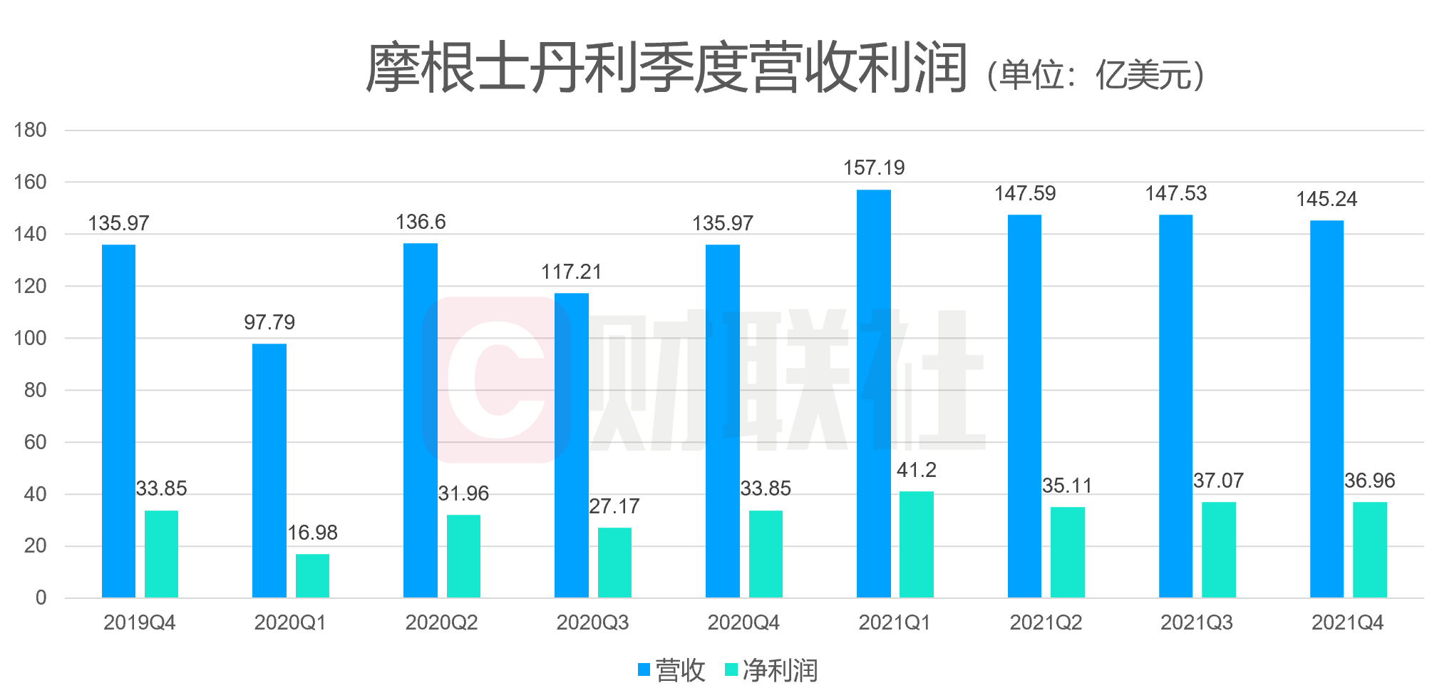 在财富管理业务方面,大摩Q4季度实现营收62.54亿美元,同比上升10%,主要受到资产管理费用和客户融资业务收入增加带动。投资管理业务的营收激增59%至17.51亿美元,主要反映收购Eaton Vance产生的影响。
