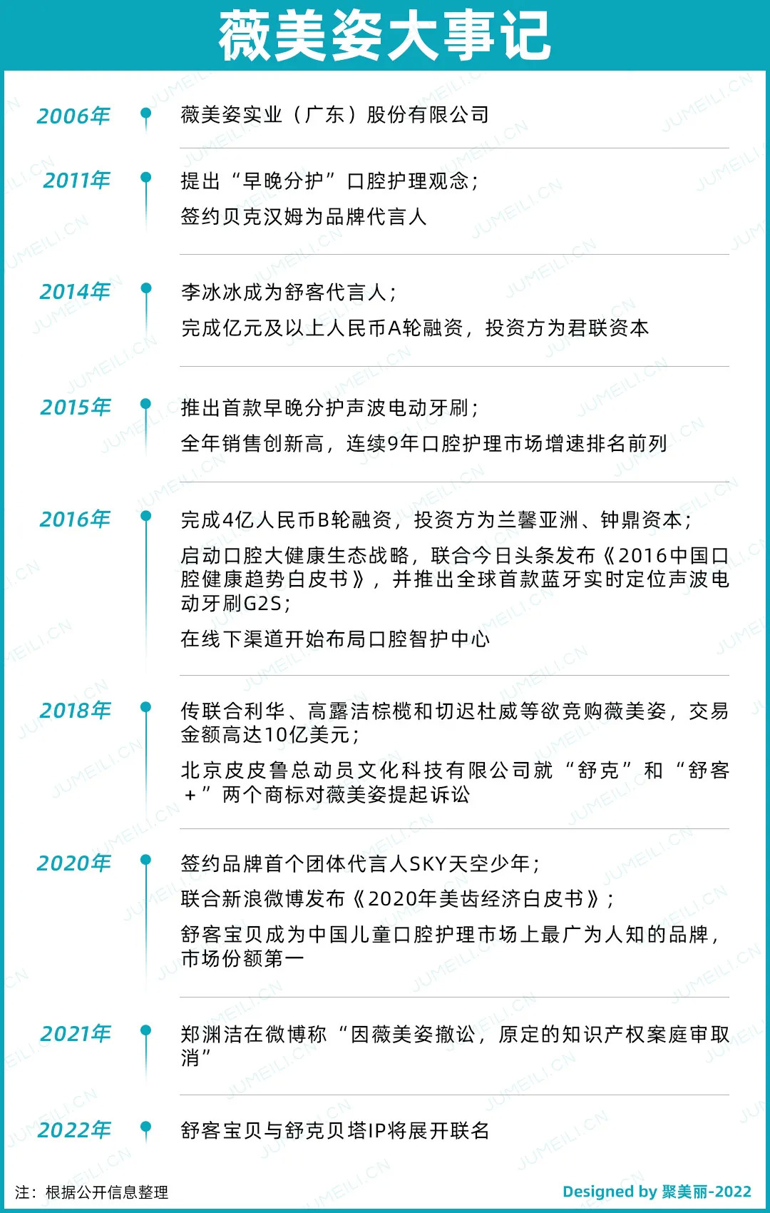 官方资料显示,薇美姿成立于2006年,是集研发、生产和销售于一体的创新型高科技企业。旗下拥有口腔护理品牌舒客(Saky)和儿童口腔护理品牌舒客宝贝(SakyKids)两大品牌。