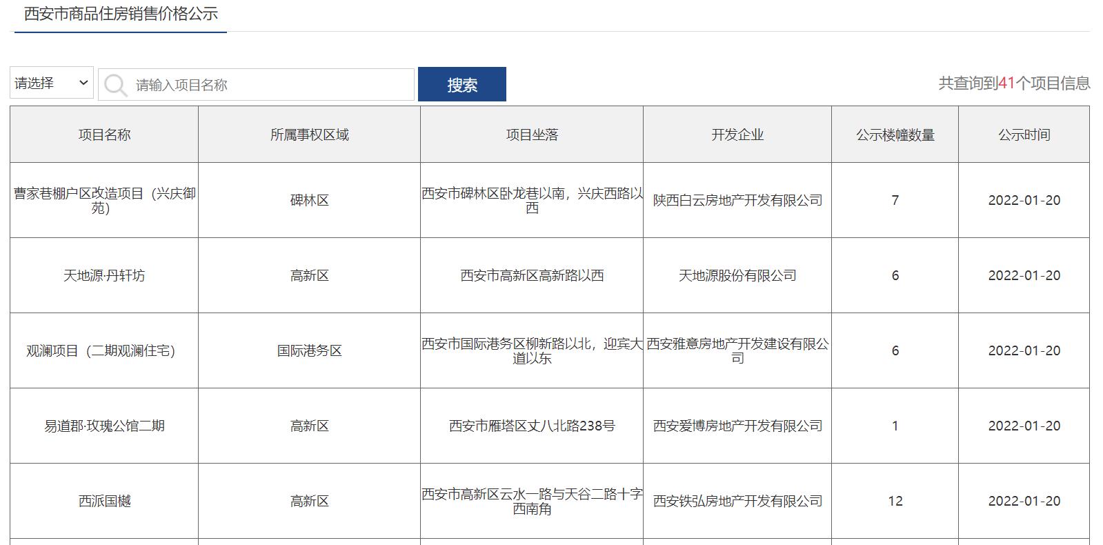 受疫情影响,新年伊始,西安房地产市场一直没有新楼盘推出。这不,1月20日,2022年首批房源价格公示,西安市住建局公布了五个楼盘的均价,分别为白云兴庆御苑,天地源丹轩坊,中国铁建西派国樾,绿城观澜以及易道郡玫瑰公馆。