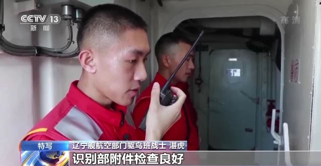 辽宁舰航空部门驱鸟班战士湛虎:在渤海海域离陆地比较近,那个地方鸟类活动比较频繁,平时可能鸟类可以达到上百只,现在深入远海大洋,离岸边也比较远了,所以能看到鸟类的活动明显减少。就算现在鸟类比较少,我们也不能放松警惕。