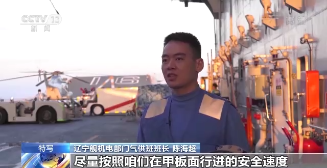 辽宁舰机电部门气供班班长 陈海超:参考飞行甲板飞机的布列情况,按照先后的顺序依次给飞机加氧充氮,完成一系列飞行保障任务之后,我们就可以下去,到指定部位进行待命了。