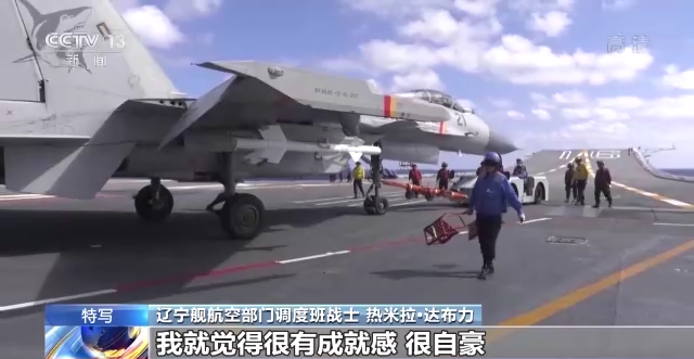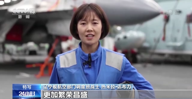 辽宁舰航空部门调度班战士 热米拉·达布力:就是因为它难,然后就是想挑战一下,跟歼-15大概就是离得最近的位置,然后看看它放飞,然后回收。这种感觉就很真实。当它放飞成功的时候,我就觉得很有成就感,很自豪。是我保障的歼-15,它又成功起飞了,就有这种感觉。