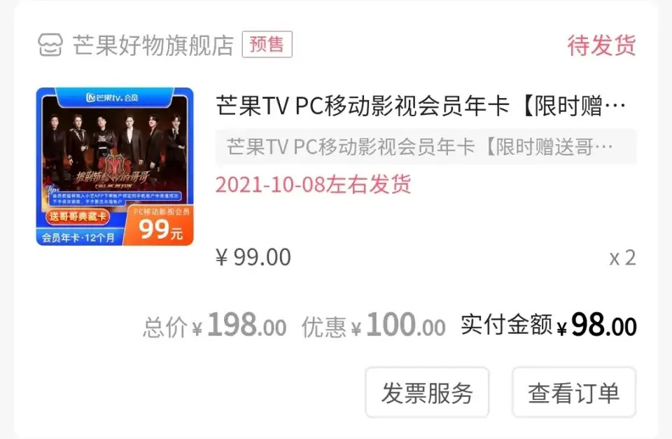 在2021年中,芒果TV在举办青春芒果节时,会员价格以69元一年销售,几近于同行一两个季度的会员价格;在小芒种花夜时,更是有网友利用优惠券,以98元两年的价格购得会员权益。