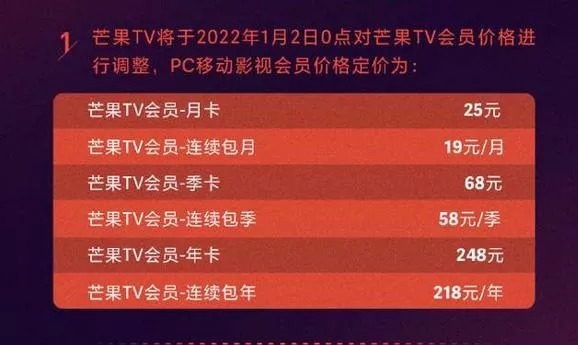 当然,平台也意识到了低价营销并不是长久之计,在2022年1月2日起,芒果TV便针对移动影视会员价格进行调整,同时全面升级会员权益矩阵。其中,连续包月价格将上调1元,连续包季价格将上调5元,连续包年价格将上调10元。此外,月卡、季卡价格保持不变,年卡价格将上调20元。