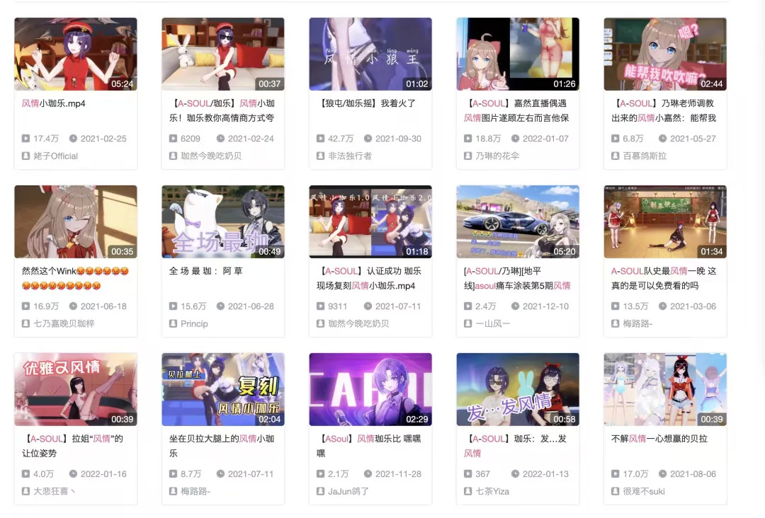 甚至在一次直播中,A-SOUL的Vocal担当珈乐面对不时刷过的“烧(骚的谐音)”,顺水推舟地告诉弹幕这个字以后可以用“风情”来替代,从此“风情”成了一个新梗,而更显粗鄙的“烧”则基本绝迹于A-SOUL圈子。