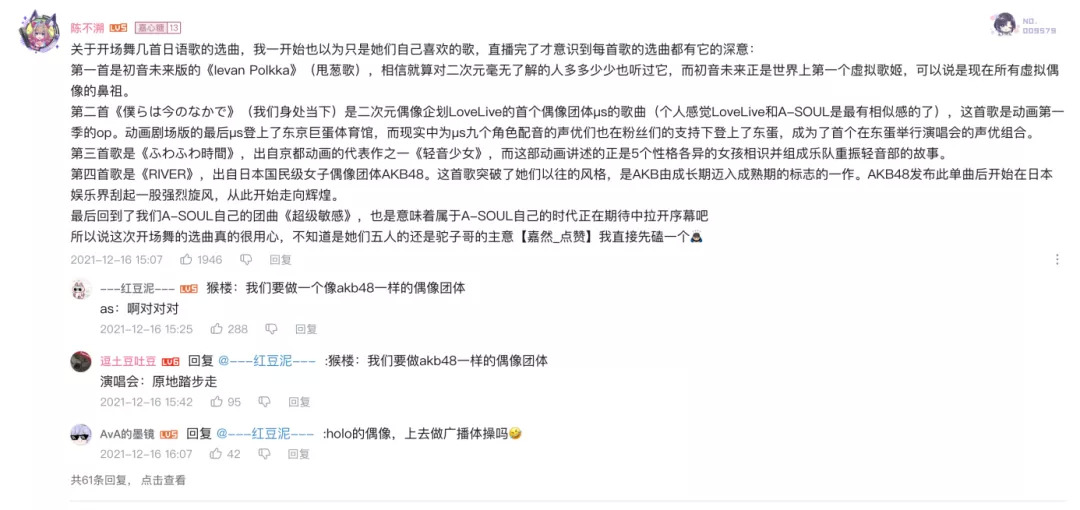 A-SOUL出道一周年直播录屏的评论
