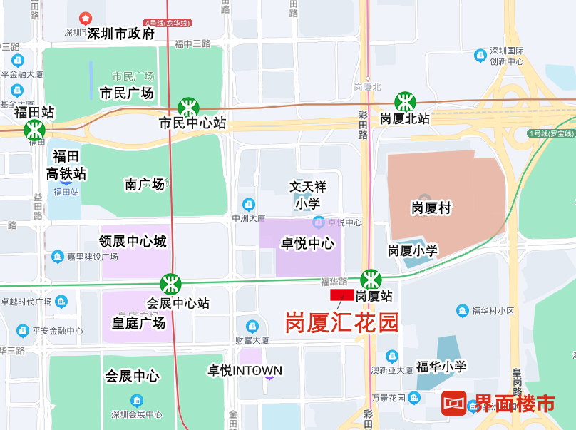 岗厦汇花园位于福华路和海田路交汇处,属于福田CBD的外围地带,由于城市建设较早,片区配套非常完善。