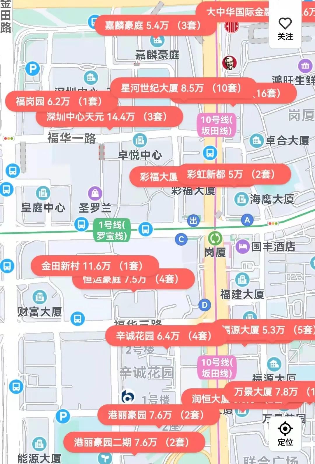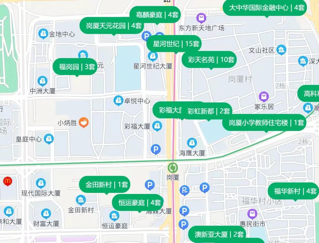 同时,因为片区建设较早,周边的二手房小区非常多,有岗厦天元花园、星河世纪、恒运豪庭等等。