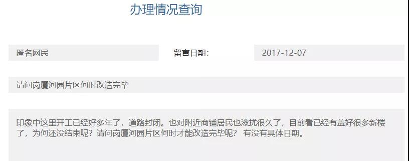 事实上,岗厦汇花园作为岗厦河园片区旧改项目的一部分,早在1998年,深圳市政府就决定对岗厦河园片区进行全面改造;2006年7月,福田区委区政府在市民中心隆重举行岗厦河园片区城中村改造项目签约仪式;同年,福田区政府与岗厦股份公司、金地大百汇公司签署《岗厦河园片区改造项目合作协议》;2010年,项目旧改专规公示……