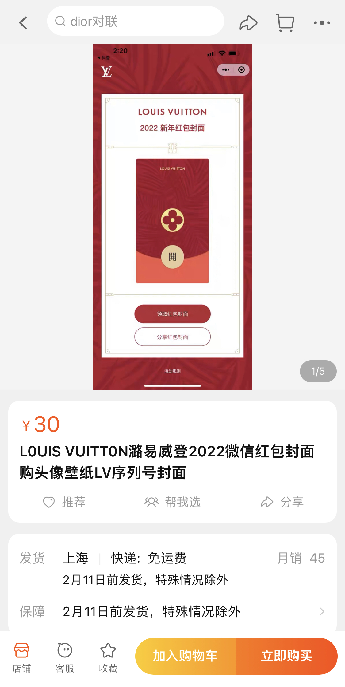 灰色产业随之催生。在淘宝或闲鱼上搜索奢侈品牌红包封面,可以看到大量的商家在销售领取序列码,其中古驰和路易威登等品牌的封面可以卖到30元的价格。奢侈品牌的形象为虚拟的红包带来了高溢价,作为社交货币的属性则是引发网友疯狂追逐的原因。