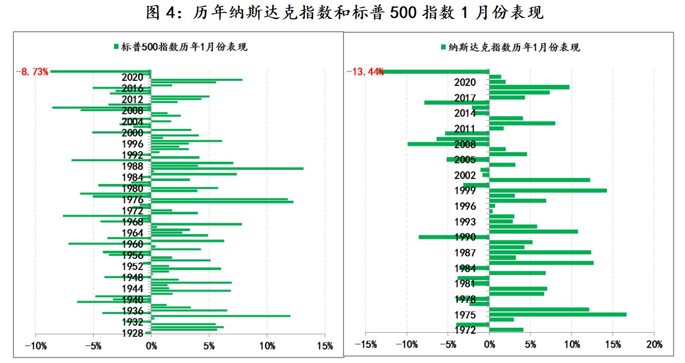 美股对美联储政策调整的担忧更重。新年以来美股出现了大幅下挫,截至目前纳斯达克指数已累计下跌13.4%,是1972年以来最差开局;标普500指数则累计下跌8.7%,是1928年以来最差开局。在美股市场存在一条经验规律——标普5日法则(The S&P 5-Day Rule):若美股在新年前五个交易日上涨,则全年上涨;若前五个交易日下跌则全年下跌。美国《股市年鉴》的数据显示,1950 年以来,上涨规律有效的概率是85% ,下跌规律有效的概率是50% ,换而言之美股当年走势受开局的影响十分明显。而且上一轮加息周期中,2016年美联储的加息节奏就是被美股的表现改变的,当年年初市场也是普遍预期美联储年内将加息四次,但美联储实际仅仅加了一次,当年1月份美股也是大跌的,标普500指数跌了5.07%,纳斯达克指数跌了7.86%。