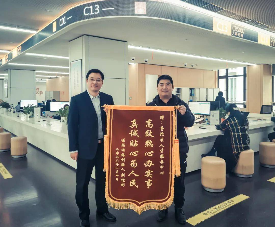 上海谦玛网络科技有限公司创始人向区人才服务中心送上锦旗