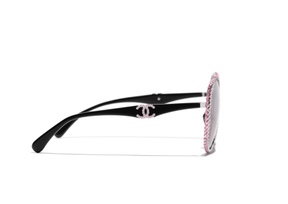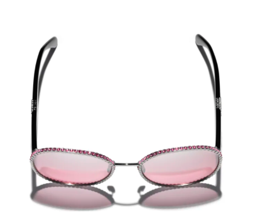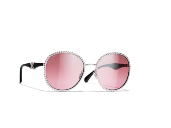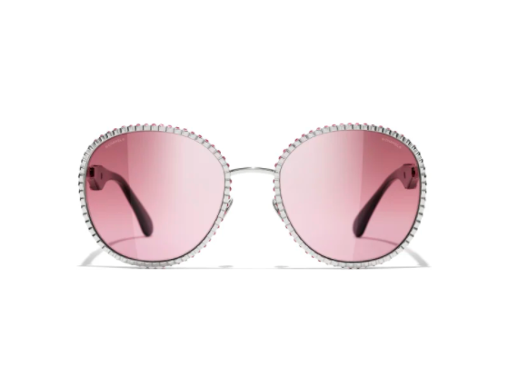 Chanel新款圆形太阳眼镜能为你的情人节注入一段粉红色的回忆。新款的镜框由纤细的金属丝包覆,边缘饰以粉红色水晶点缀,镜架以流畅的线条和粉色水晶组成的经典香奈儿标志搭配,透过水晶折射出大小不一的晶莹光环,在线条清晰而纯净的光影下,将香奈儿新款太阳镜的华丽气质不着痕迹的表现出来。镜片同样以渐变的粉色呈现,透亮清爽。带你的女友在阳光明媚的春日去野餐,这款粉色太阳镜定能成为联结彼此的爱的象征。