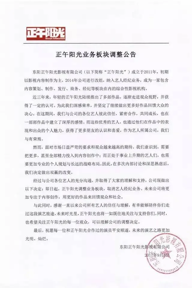 另一方面,当时正午阳光有一部分精力分散到了公司艺人经纪业务板块。从资本角度看,影视公司总是希望减少艺人片酬,降低成本;而艺人经纪又希望将艺人的利益最大化,成本不可避免会提升,由此两部分业务就会陷入一个怪圈。