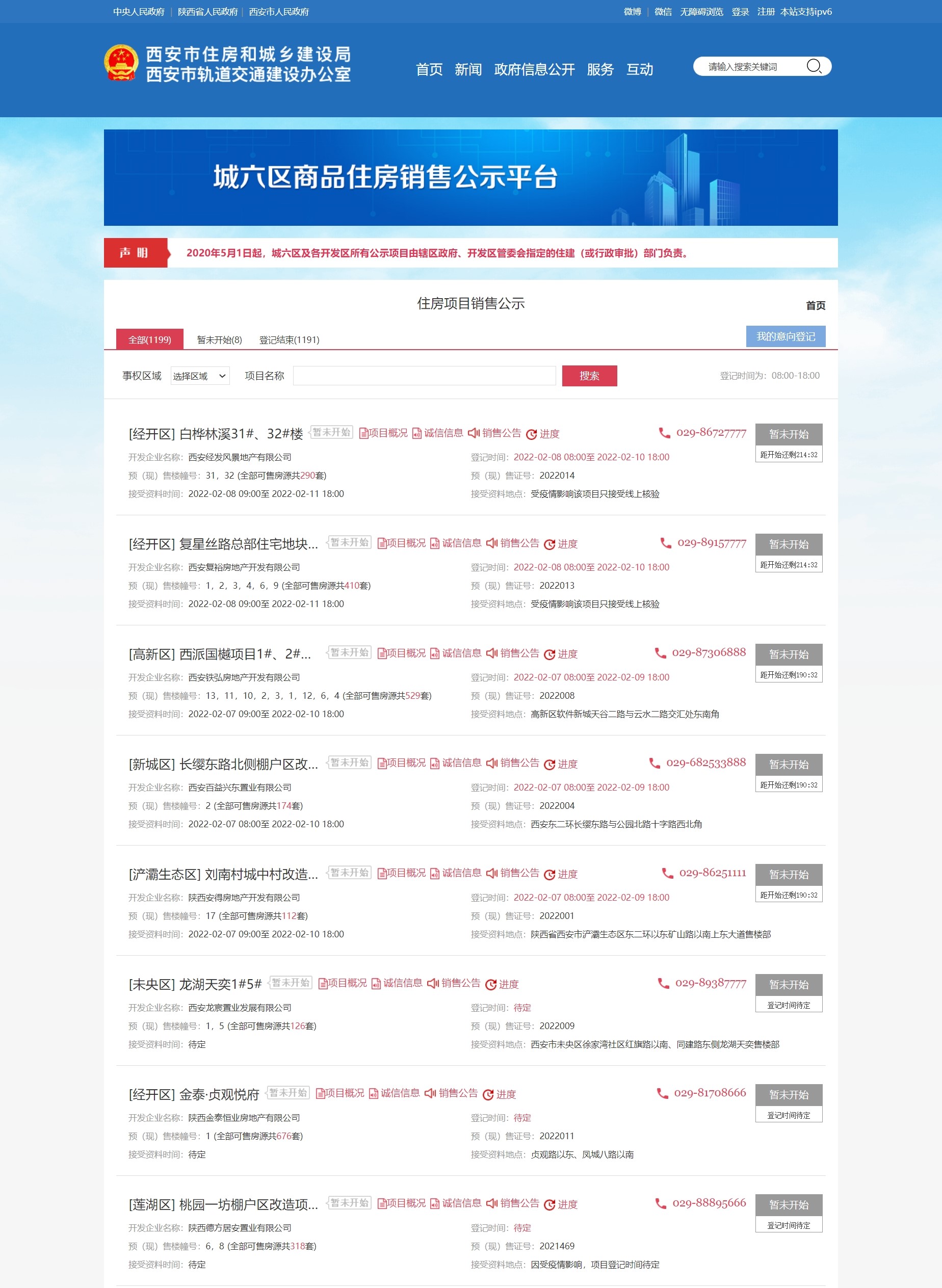 界面楼市西安频道从西安市住房和城乡建设局网站获悉,有多个楼盘将于春节过后,2月8日开始集中入市,登记。