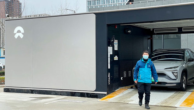 在王锋工作时,记者注意到,他的工作流程主要有三步:第一,主动与换电用户问好,确认换电下单成功;第二,引导用户将车停入泊车框,启动自动泊车和换电进程,站内通过车端请求;第三,询问用户是否需要轮胎充气,补充玻璃水。