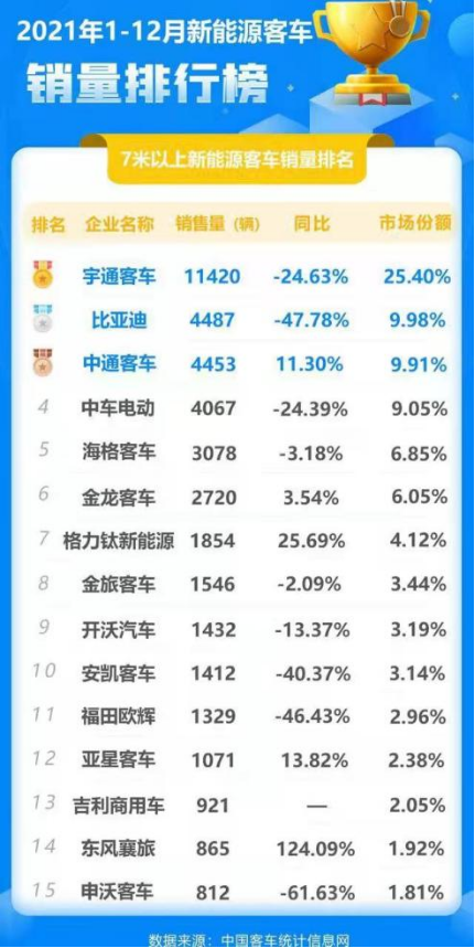 目前,格力钛已经成功入围世界新能源汽车500强,并且销量在我国的新能源客车领域排名第三,仅次于比亚迪和宇通客车。2021年1到7月,银隆新能源客车累计销量行业第四,市场份额为7.22%。