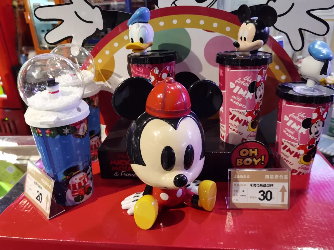 在影院里,能看到的除了这些食物,还有一些周边的产品。在橱窗前,有一个3、4岁的小女孩指着里面的玩偶,对着自己的妈妈表示出想要的样子。