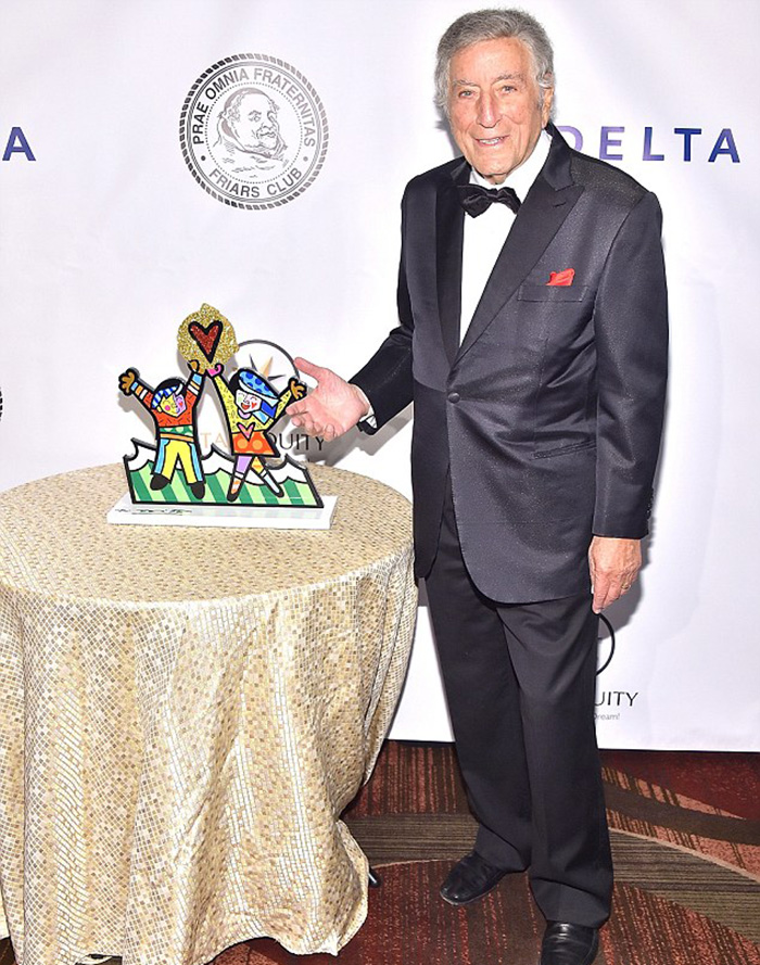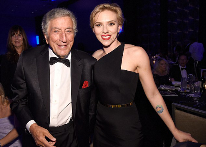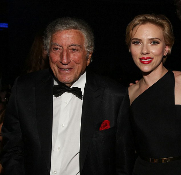 寡姐也跟当晚主人公托尼一起拍了照,托尼一身黑色西装,里面是白色衬衫,搭配了一个黑色领结,精气神十足。晚宴上,弗莱阿斯俱乐部颁发给了托尼艺人指标大奖,托尼加入这个俱乐部已经超过50年了。