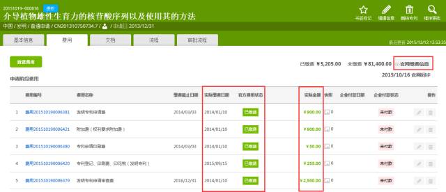 根据中国国家知识产权局的费用信息,innosnap系统会自动给出企业旗下需缴费专利所需缴纳的年费、申请费的费用信息。