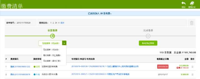 同时,innosnap系统为自缴官费的机构提供快速缴费操作,可一键生成excel缴费清单,并在缴费完成后可批量修改费用状态。
