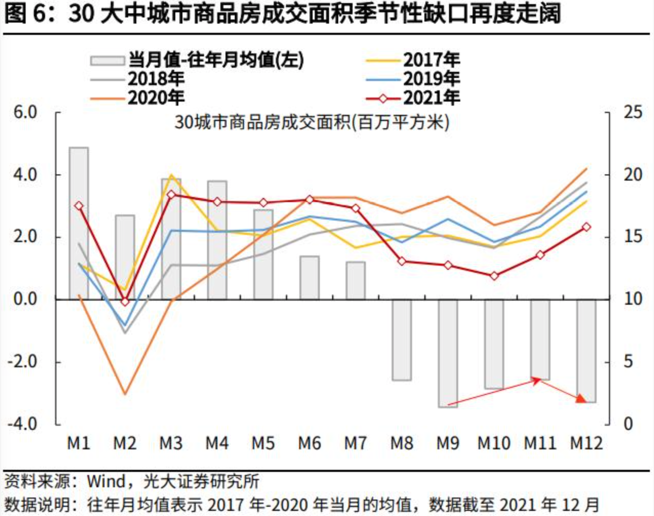 居民端来看,一方面,从30个大中城市的商品房销售数据来看,无论是销售套数,还是销售面积,2021年12月季节性缺口在连续两个月呈现收敛态势之后再度走阔,房地产销售数据仍未看到改善。因而,以个人住房按揭贷款为主的对私中长期贷款,在2021年10-11月连续两个月改善之后,从2021年12月开始再度呈现同比收缩态势。另一方面,新冠疫情本土持续多点散发,社交限制也在一定程度上对居民消费产生了负面影响,进而对居民短期信贷产生拖累。