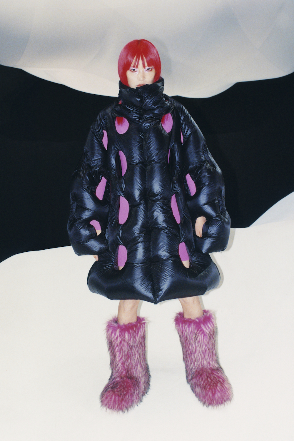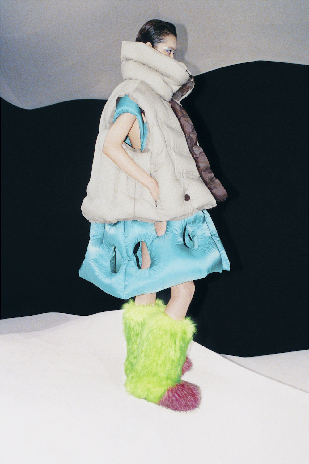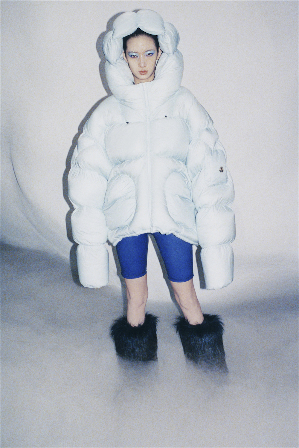中国设计师张鼎昀硕士毕业于中央圣马丁艺术与设计学院,于2021年2月正式推出个人同名品牌。他的未来主义系列以巨大廓形与超膨胀质感为亮点,一经推出便赢得时尚界的广泛关注。张鼎昀对性能、填充和廓形的自如运用能力与盟可睐Moncler一拍即合。由其操刀的全新系列,以热粘技术造就不规则填充绗缝细节,巧妙融合设计师本人的未来主义美学与盟可睐Moncler的独到工艺。