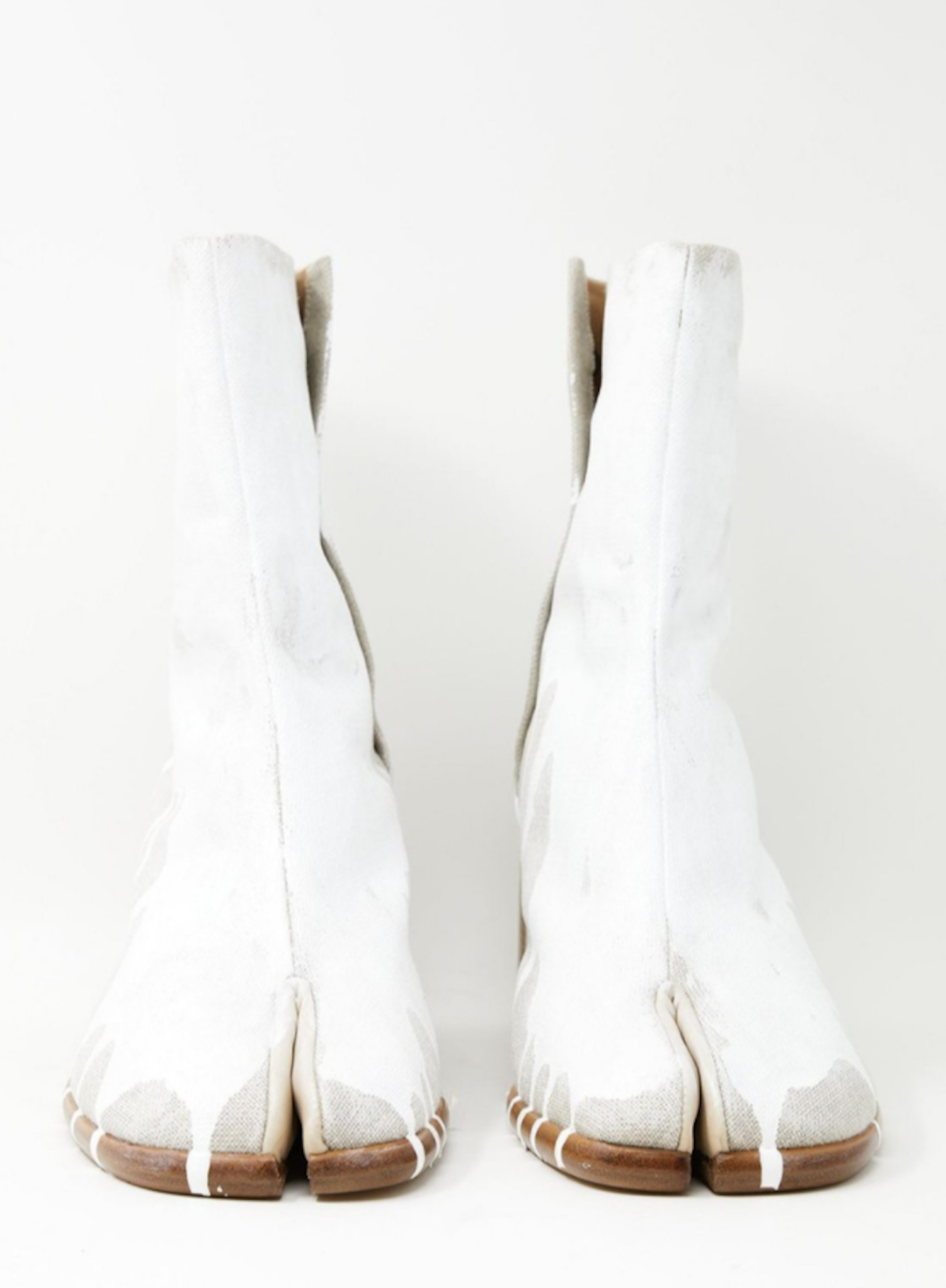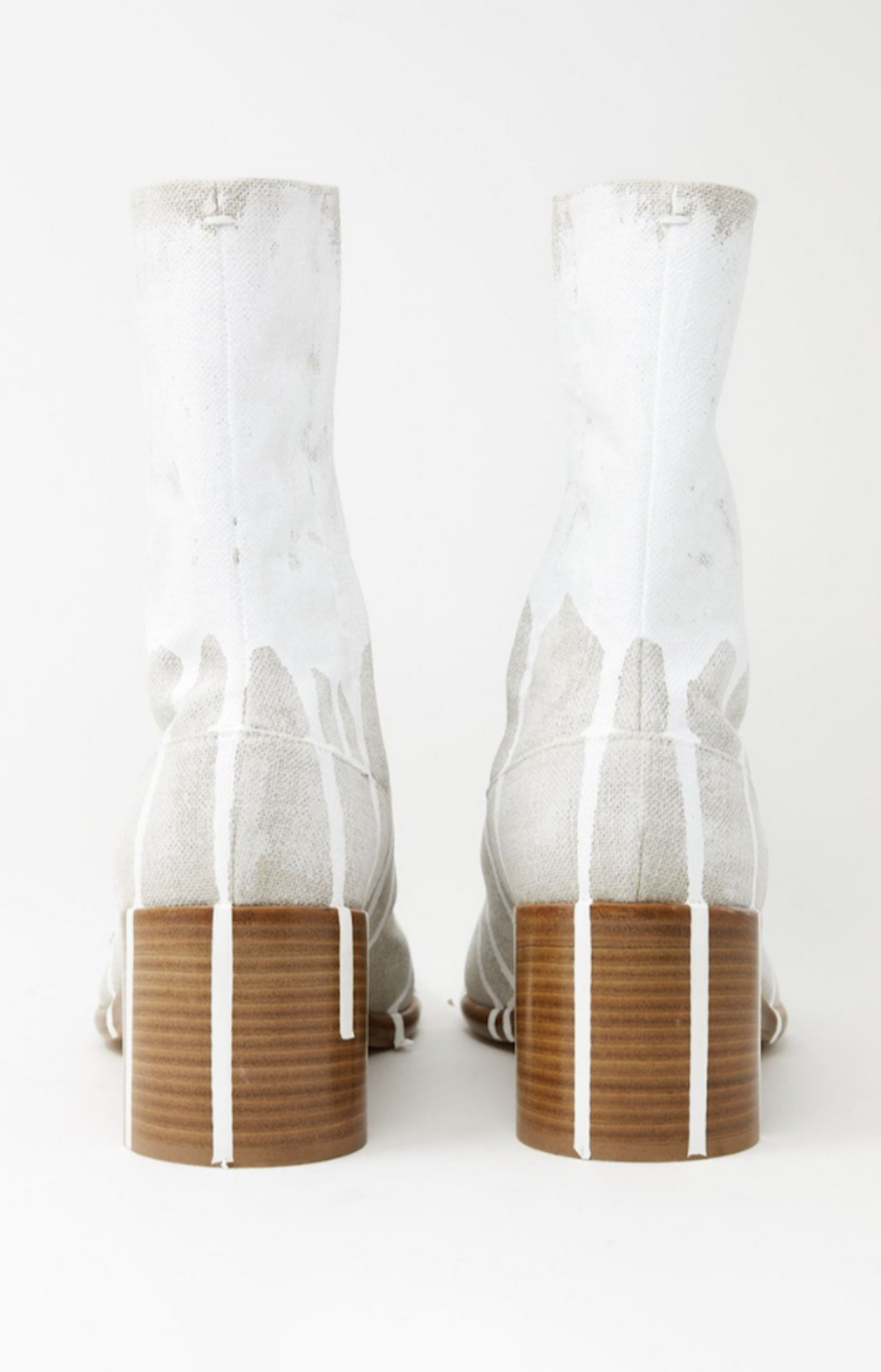 “Maison Margiela Paint Effect Tabi Ankle Boot”采用亚麻外层和皮革内层制成,以喷洒油漆的鞋面演绎颠覆性的时髦格调。白色油漆沿着亚麻鞋面倾泻而下,接近脚后跟部位逐渐变细成小滴状,具备十足的先锋实验风格。目前这双“Tabi Ankle Boot” 可在知名买手店Machine-A购得。