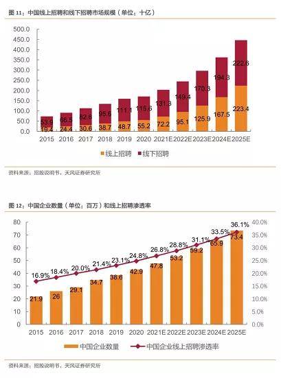 天风证券发布的研报指出,中国在线招聘市场的收入规模预计将从2020年的551亿人民币增至2025年的2234亿,复合年增长率高达32.3%。